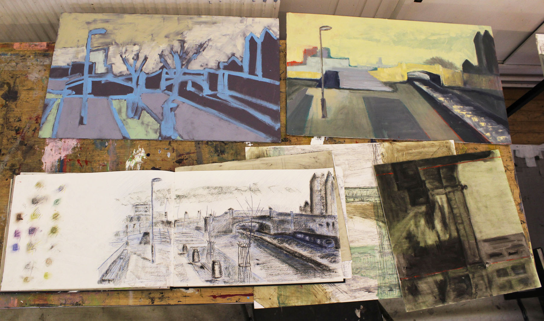 A major part of the course consists of drawing in the environment, so students learn the importance of using a sketchbook effectively as a tool for visual recording of their findings. Back in the studio, these findings are used to create personal work, exploring ideas and developing an individual language. Drawing and use of colour is central to the course, as is learning to work with a variety of materials. Preparing and making surfaces, expressive application of paint, responsive mark making, and ways of deconstructing and reinvigorating the surface will be examined.