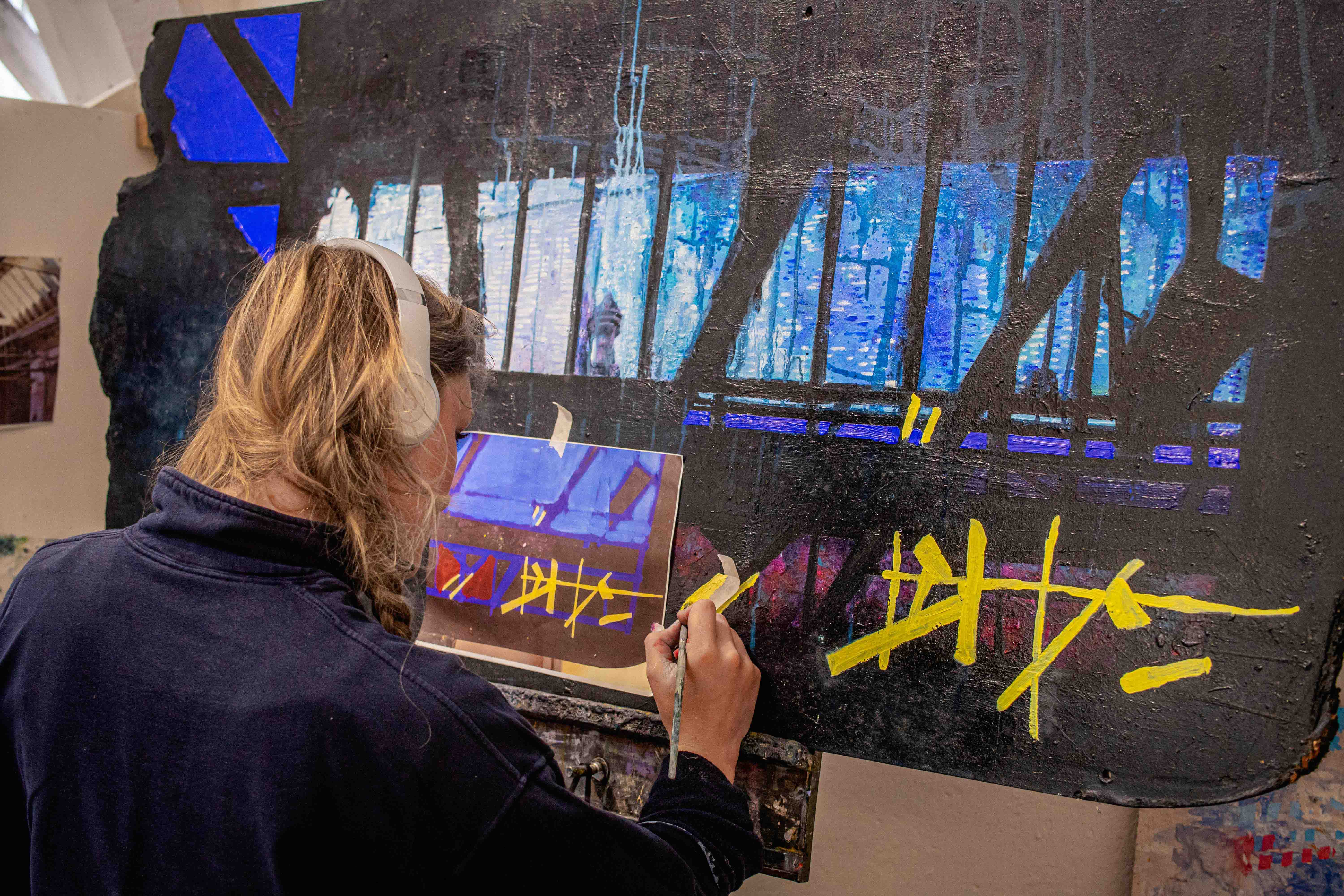 Students work within an open and dedicated studio environment, engaging in daily dialogue with tutors and class colleagues. Weekly lectures explore the different ideas behind painting, and regular one-to-one and group tutorials allow students to push their work. Aims and outcomes of all projects are assessed in constructive class critiques; developing the student’s ability to critically reflect on their own work and that of others.